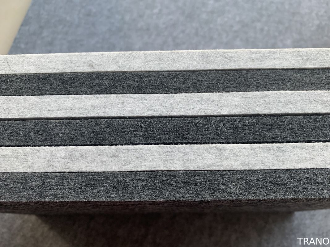 TRANO is the supplier of high-quality pressed PET felt. Available as a panel or in a beautiful design. This acoustic felt is made of 100% polyester fibres. A large part of this is recycled polyester (up to 50%). This also makes this acoustic material a sustainable choice!